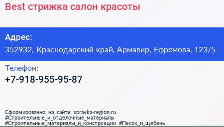 Best стрижка, салон красоты по адресу 352932, Краснодарский край, Армавир, Ефремова, 123/5 в дальнейшем Организация, размещена в следующих категориях: