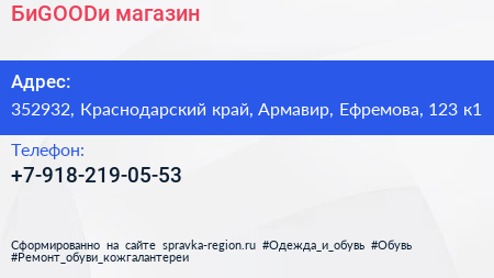 БиGOODи, магазин по адресу 352932, Краснодарский край, Армавир, Ефремова, 123 к1 в дальнейшем Организация, размещена в следующих категориях: