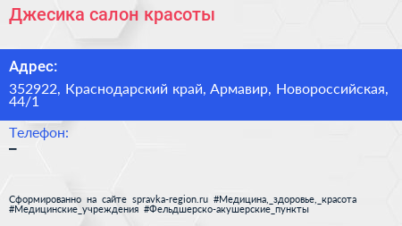 Джесика, салон красоты по адресу 352922, Краснодарский край, Армавир, Новороссийская, 44/1 в дальнейшем Организация, размещена в следующих категориях: