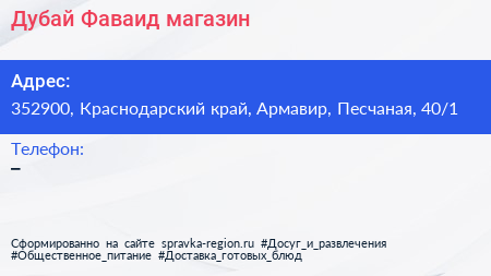 Дубай Фаваид, магазин по адресу 352900, Краснодарский край, Армавир, Песчаная, 40/1 в дальнейшем Организация, размещена в следующих категориях: