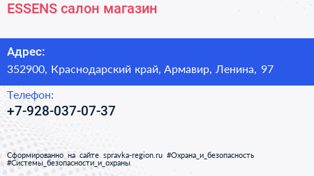 ESSENS, салон-магазин по адресу 352900, Краснодарский край, Армавир, Ленина, 97 в дальнейшем Организация, размещена в следующих категориях: