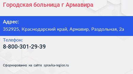 Городская больница г. Армавира по адресу 352925, Краснодарский край, Армавир, Раздольная, 2а в дальнейшем Организация, размещена в следующих категориях: