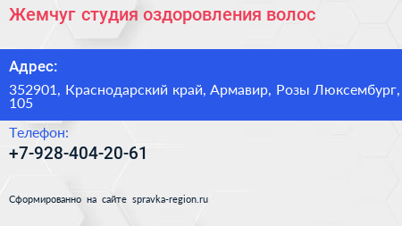 Жемчуг, студия оздоровления волос по адресу 352901, Краснодарский край, Армавир, Розы Люксембург, 105 в дальнейшем Организация, размещена в следующих категориях: