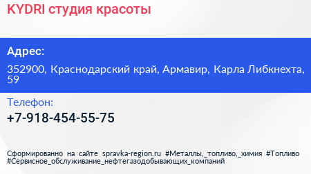 KYDRI, студия красоты по адресу 352900, Краснодарский край, Армавир, Карла Либкнехта, 59 в дальнейшем Организация, размещена в следующих категориях: