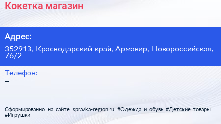 Кокетка, магазин по адресу 352913, Краснодарский край, Армавир, Новороссийская, 76/2 в дальнейшем Организация, размещена в следующих категориях: