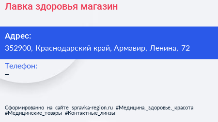 Лавка здоровья, магазин по адресу 352900, Краснодарский край, Армавир, Ленина, 72 в дальнейшем Организация, размещена в следующих категориях: