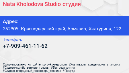 Nata Kholodova Studio, студия по адресу 352905, Краснодарский край, Армавир, Халтурина, 122 в дальнейшем Организация, размещена в следующих категориях: