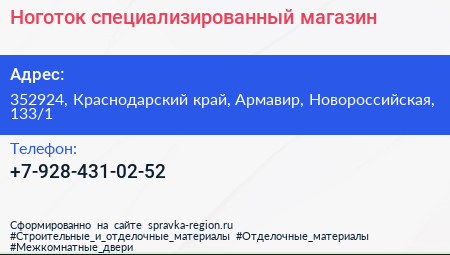 Ноготок, специализированный магазин по адресу 352924, Краснодарский край, Армавир, Новороссийская, 133/1 в дальнейшем Организация, размещена в следующих категориях: