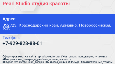 Pearl Studio, студия красоты по адресу 352923, Краснодарский край, Армавир, Новороссийская, 90Б в дальнейшем Организация, размещена в следующих категориях: