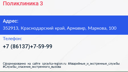 Поликлиника №3 по адресу 352913, Краснодарский край, Армавир, Маркова, 100 в дальнейшем Организация, размещена в следующих категориях: