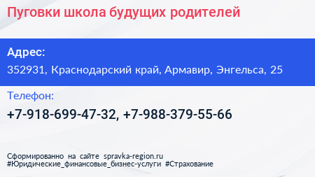 Пуговки, школа будущих родителей по адресу 352931, Краснодарский край, Армавир, Энгельса, 25 в дальнейшем Организация, размещена в следующих категориях: