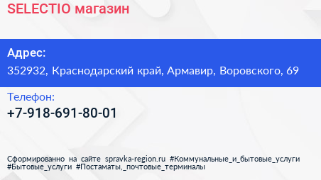 SELECTIO, магазин по адресу 352932, Краснодарский край, Армавир, Воровского, 69 в дальнейшем Организация, размещена в следующих категориях: