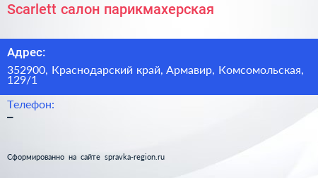 Scarlett, салон-парикмахерская по адресу 352900, Краснодарский край, Армавир, Комсомольская, 129/1 в дальнейшем Организация, размещена в следующих категориях: