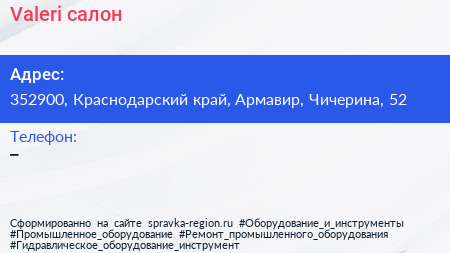 Valeri, салон по адресу 352900, Краснодарский край, Армавир, Чичерина, 52 в дальнейшем Организация, размещена в следующих категориях: