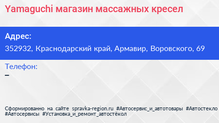 Yamaguchi, магазин массажных кресел по адресу 352932, Краснодарский край, Армавир, Воровского, 69 в дальнейшем Организация, размещена в следующих категориях: