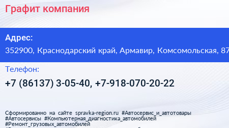 Для связи с организацией воспользуйтесь номером телефона: +7 (86137) 3-05-40, +7-918-070-20-22. Пн: c 10:00-13:00, Вт: c 10:00-13:00, Ср: c 10:00-13:00, Чт: c 10:00-13:00, Пт: c 10:00-13:00, Сб: выходной, Вс: выходной, вы можете обратиться в эту организацию.