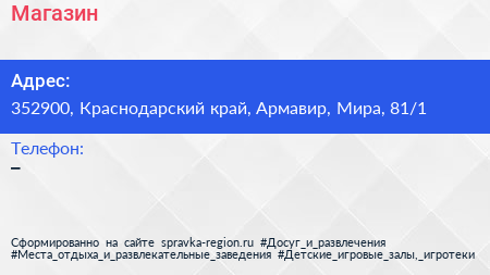 Магазин по адресу 352900, Краснодарский край, Армавир, Мира, 81/1 в дальнейшем Организация, размещена в следующих категориях: