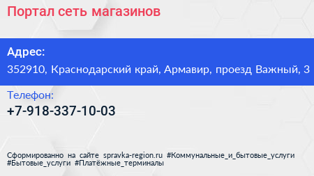 Портал, сеть магазинов по адресу 352910, Краснодарский край, Армавир, проезд Важный, 3 в дальнейшем Организация, размещена в следующих категориях: