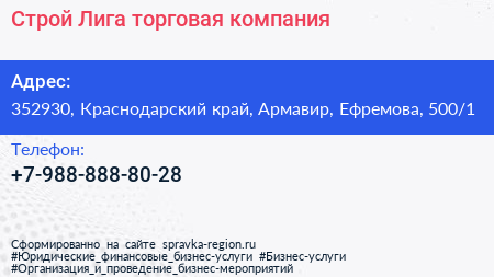 Строй Лига, торговая компания по адресу 352930, Краснодарский край, Армавир, Ефремова, 500/1 в дальнейшем Организация, размещена в следующих категориях: