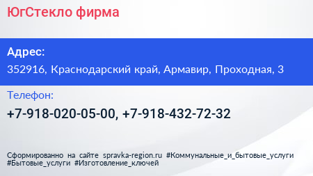 ЮгСтекло, фирма по адресу 352916, Краснодарский край, Армавир, Проходная, 3 в дальнейшем Организация, размещена в следующих категориях: