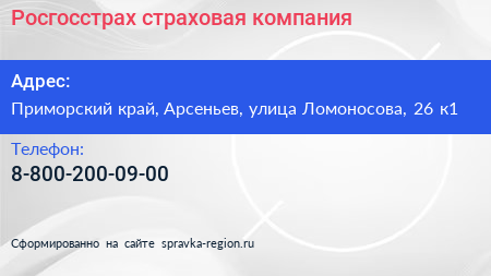 Росгосстрах, страховая компания по адресу Приморский край, Арсеньев, улица Ломоносова, 26 к1 в дальнейшем Организация, размещена в следующих категориях: