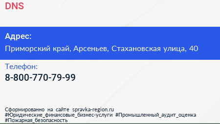 DNS по адресу Приморский край, Арсеньев, Стахановская улица, 40 в дальнейшем Организация, размещена в следующих категориях: