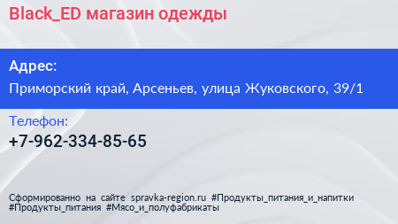 Black_ED, магазин одежды по адресу Приморский край, Арсеньев, улица Жуковского, 39/1 в дальнейшем Организация, размещена в следующих категориях: