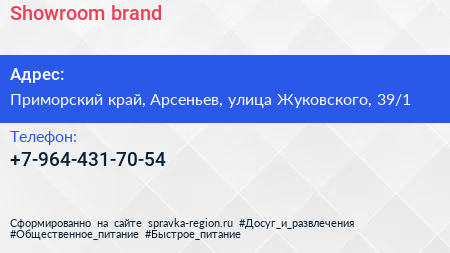 Showroom.brand по адресу Приморский край, Арсеньев, улица Жуковского, 39/1 в дальнейшем Организация, размещена в следующих категориях: