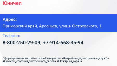 Юничел по адресу Приморский край, Арсеньев, улица Островского, 1 в дальнейшем Организация, размещена в следующих категориях: