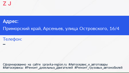 Z & J по адресу Приморский край, Арсеньев, улица Островского, 16/4 в дальнейшем Организация, размещена в следующих категориях: