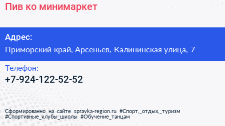 Пив & ко, минимаркет по адресу Приморский край, Арсеньев, Калининская улица, 7 в дальнейшем Организация, размещена в следующих категориях: