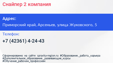 Снайпер-2, компания по адресу Приморский край, Арсеньев, улица Жуковского, 5 в дальнейшем Организация, размещена в следующих категориях: