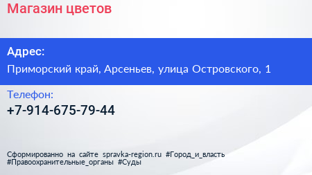 Магазин цветов по адресу Приморский край, Арсеньев, улица Островского, 1 в дальнейшем Организация, размещена в следующих категориях: