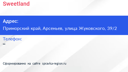 Sweetland по адресу Приморский край, Арсеньев, улица Жуковского, 39/2 в дальнейшем Организация, размещена в следующих категориях: