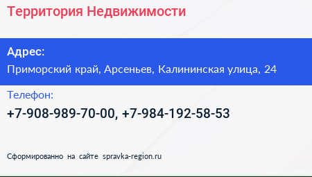 Территория Недвижимости по адресу Приморский край, Арсеньев, Калининская улица, 24 в дальнейшем Организация, размещена в следующих категориях: