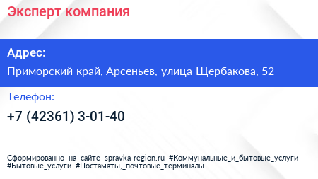 Эксперт, компания по адресу Приморский край, Арсеньев, улица Щербакова, 52 в дальнейшем Организация, размещена в следующих категориях: