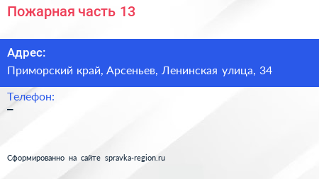 Пожарная часть №13 по адресу Приморский край, Арсеньев, Ленинская улица, 34 в дальнейшем Организация, размещена в следующих категориях: