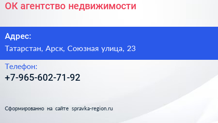 ОК, агентство недвижимости по адресу Татарстан, Арск, Союзная улица, 23 в дальнейшем Организация, размещена в следующих категориях: