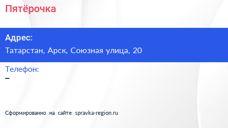 Пятёрочка по адресу Татарстан, Арск, Союзная улица, 20 в дальнейшем Организация, размещена в следующих категориях: