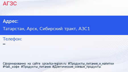 АГЗС по адресу Татарстан, Арск, Сибирский тракт, АЗС1 в дальнейшем Организация, размещена в следующих категориях: