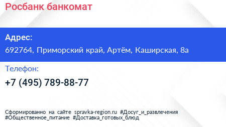 Росбанк, банкомат по адресу 692764, Приморский край, Артём, Каширская, 8а в дальнейшем Организация, размещена в следующих категориях: