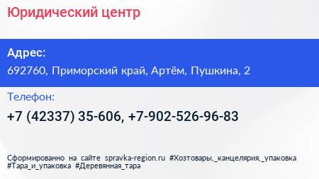 Юридический центр по адресу 692760, Приморский край, Артём, Пушкина, 2 в дальнейшем Организация, размещена в следующих категориях: