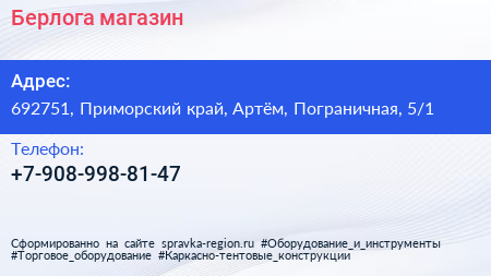 Берлога, магазин по адресу 692751, Приморский край, Артём, Пограничная, 5/1 в дальнейшем Организация, размещена в следующих категориях: