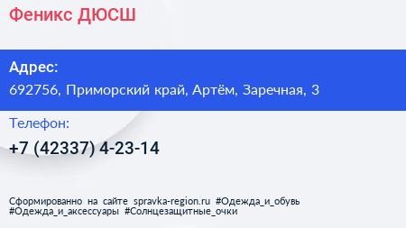Феникс, ДЮСШ по адресу 692756, Приморский край, Артём, Заречная, 3 в дальнейшем Организация, размещена в следующих категориях: