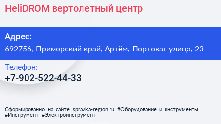 HeliDROM, вертолетный центр по адресу 692756, Приморский край, Артём, Портовая улица, 23 в дальнейшем Организация, размещена в следующих категориях:
