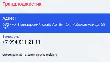 Грандлоджистик по адресу 692770, Приморский край, Артём, 1-я Рабочая улица, 58 ст3 в дальнейшем Организация, размещена в следующих категориях: