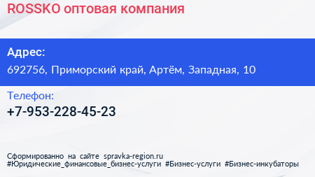 ROSSKO, оптовая компания по адресу 692756, Приморский край, Артём, Западная, 10 в дальнейшем Организация, размещена в следующих категориях: