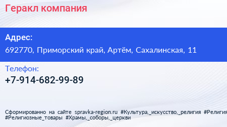 Геракл, компания по адресу 692770, Приморский край, Артём, Сахалинская, 11 в дальнейшем Организация, размещена в следующих категориях: