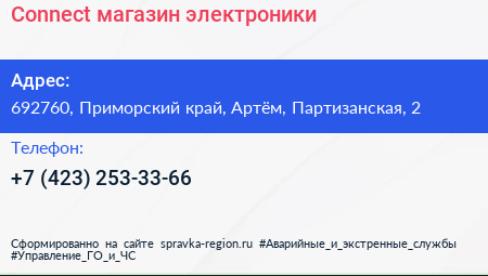 Connect, магазин электроники по адресу 692760, Приморский край, Артём, Партизанская, 2 в дальнейшем Организация, размещена в следующих категориях: