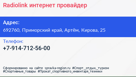 Radiolink, интернет-провайдер по адресу 692760, Приморский край, Артём, Кирова, 25 в дальнейшем Организация, размещена в следующих категориях:
